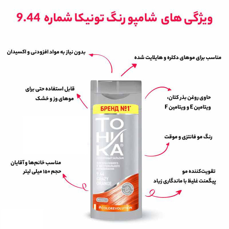 شامپو رنگ مو تونیکا شماره 9.44 حجم 150 میلی لیتر رنگ نارنجی