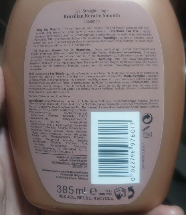 شامپو و نرم کننده کراتین برزیلی بدون سولفات حجم ۳۸۵ میلیلیتر ( امارات )