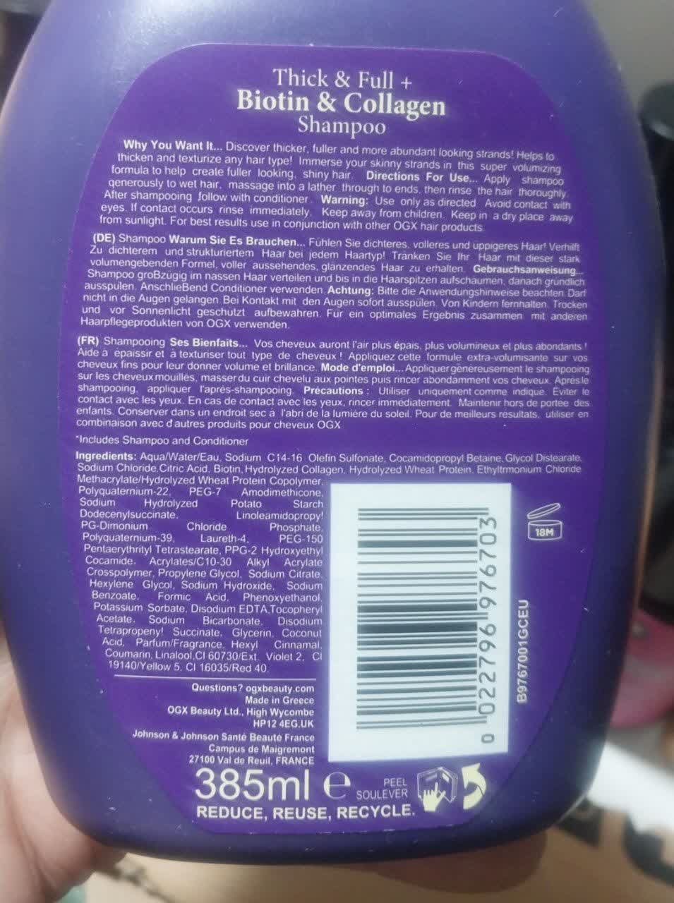 دستهبندی: شامپو پروتئین و ویتامینهکارایی محصول: افزایش حجم مو ، پر پشت کننده ، جلوگیری از ریزش موترکیبات فعال: حاوی بیوتین و کلاژنمناسب برای: انواع مو